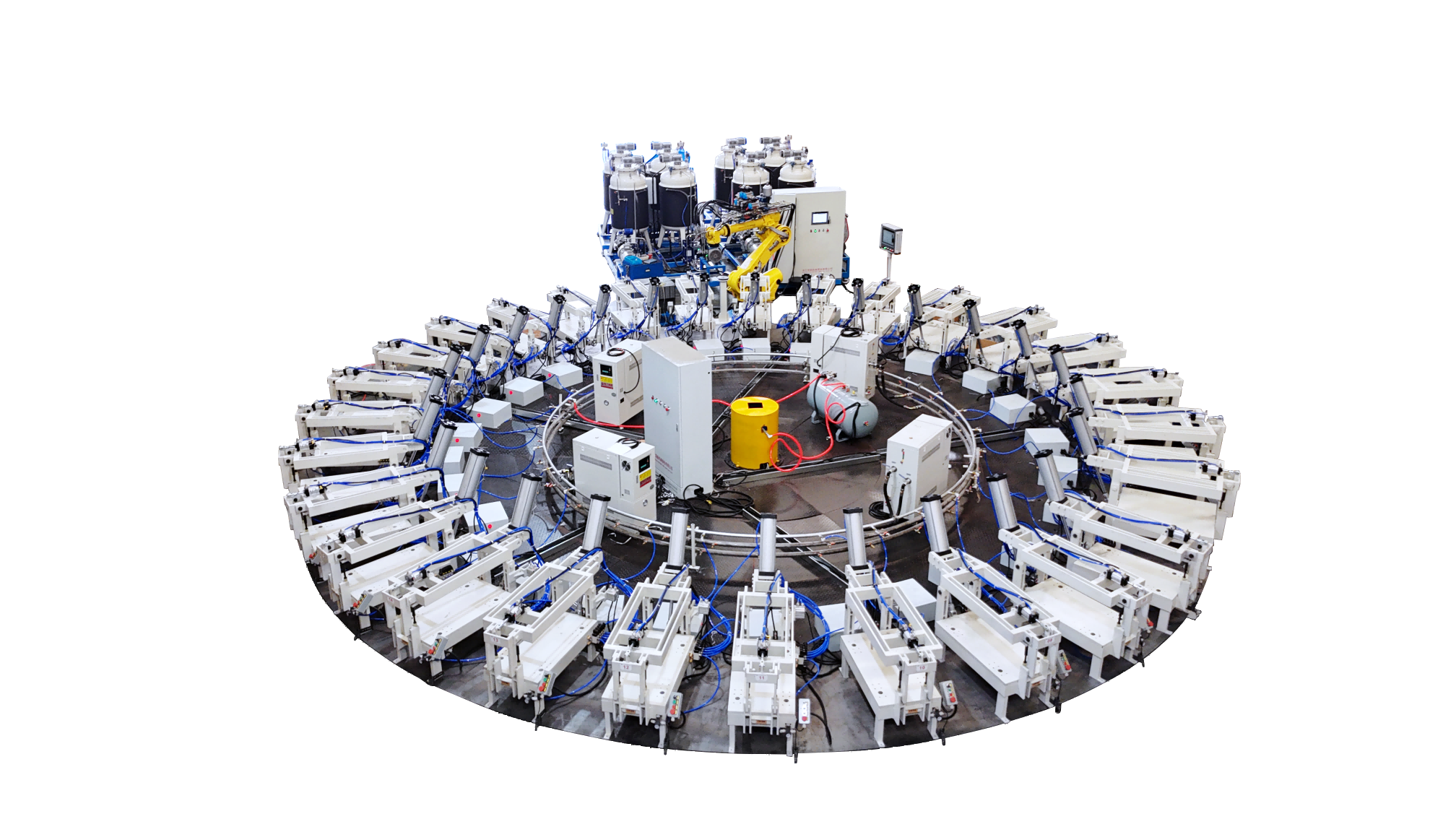 隨著社會(huì)發(fā)展,新能源汽車(chē)行業(yè)的崛起。目前汽車(chē)行業(yè)針對(duì)產(chǎn)品需求量大,為了滿(mǎn)足該行業(yè)的產(chǎn)品需求我們推出了高壓發(fā)泡機(jī)、低壓發(fā)泡機(jī)以及配套的自動(dòng)化生產(chǎn)線(xiàn),針對(duì)不同的產(chǎn)品需求,我們提供不同的解決方案。以下是部分自動(dòng)化生產(chǎn)線(xiàn)解決方案。1. 全自動(dòng)圓盤(pán)生產(chǎn)線(xiàn)是領(lǐng)新自研的全自…